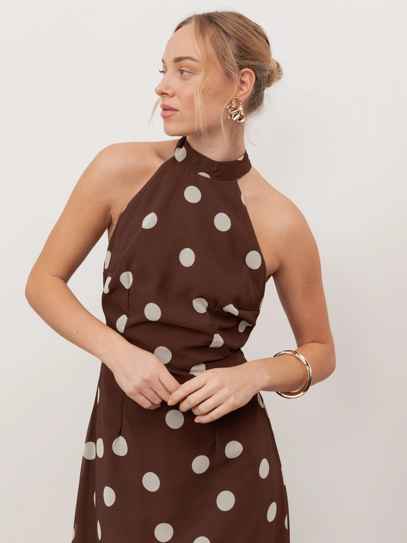 Anaya With Love Halterneck Brown Polka Dot Maxi Dress