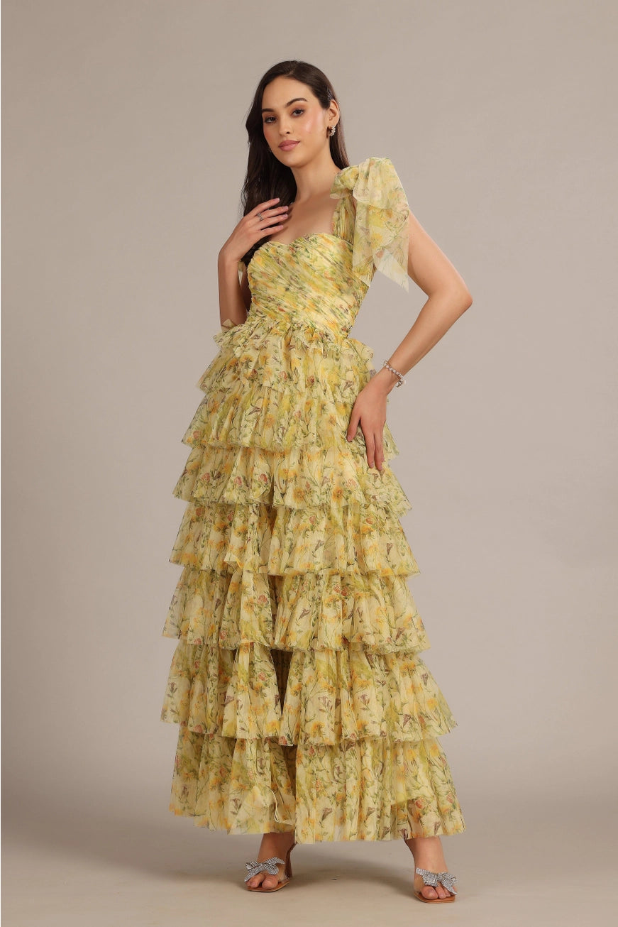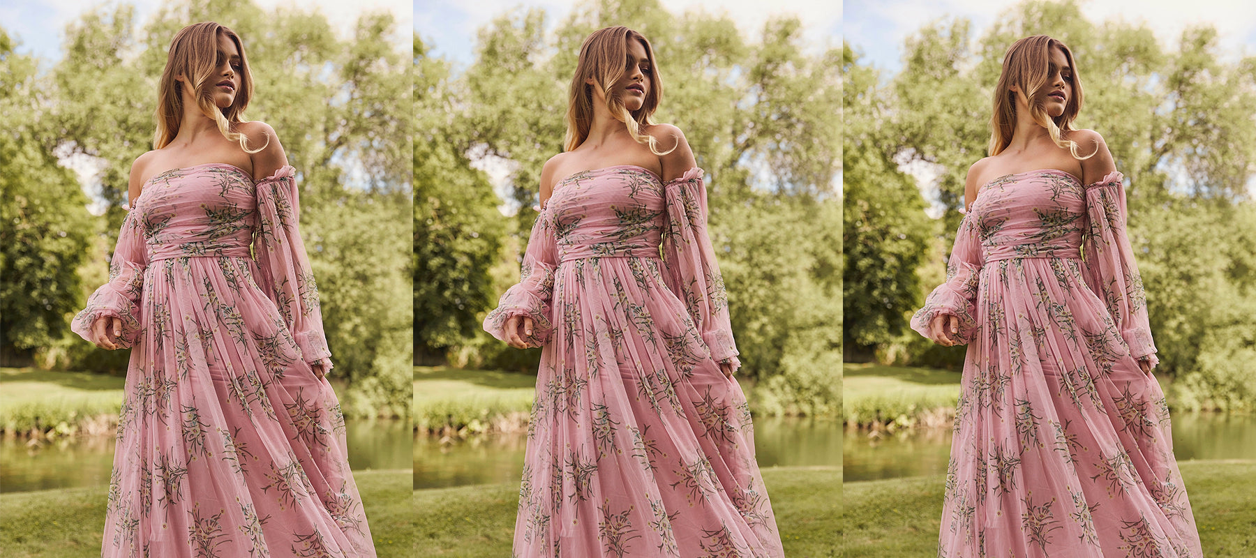 Lace & Beads Ophelia Fig Tulle Maxi Dress
