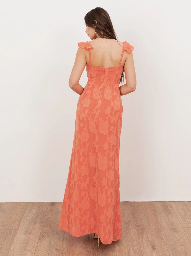Anaya With Love Orange Burnout Strappy V Neck Maxi Dress