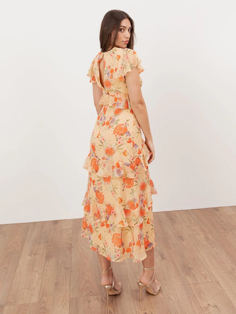 Anaya With Love Floral Orange Tiered Maxi Dress