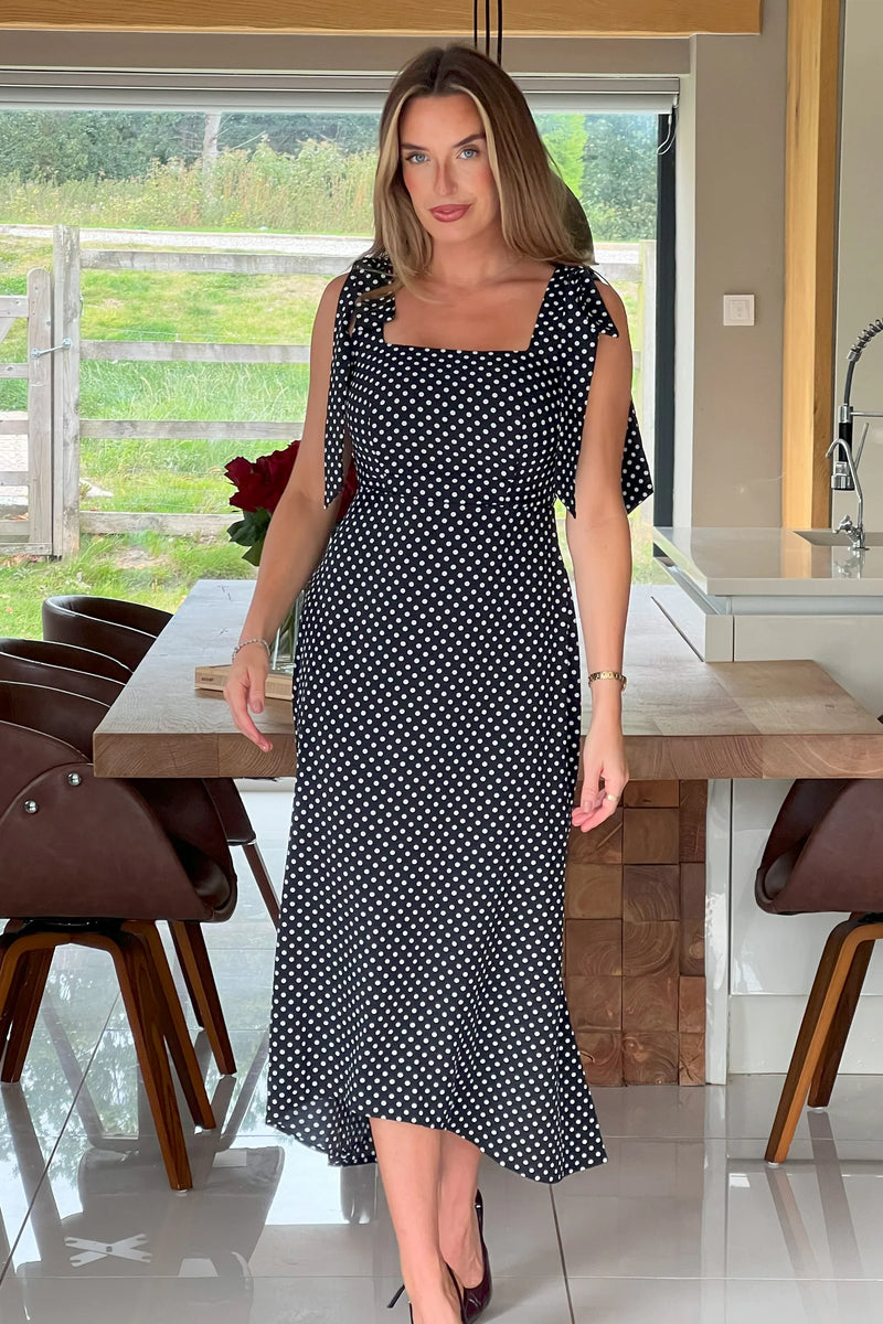 Girl In Mind Jovi Black Tie Shoulder Midi Dress