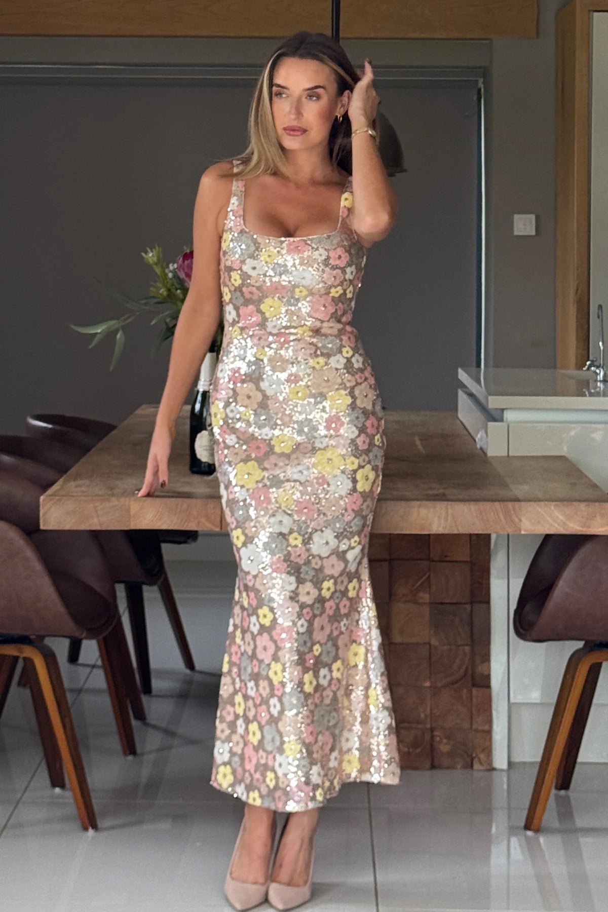 Girl In Mind Naomi Brown Floral Midi Slip Dress