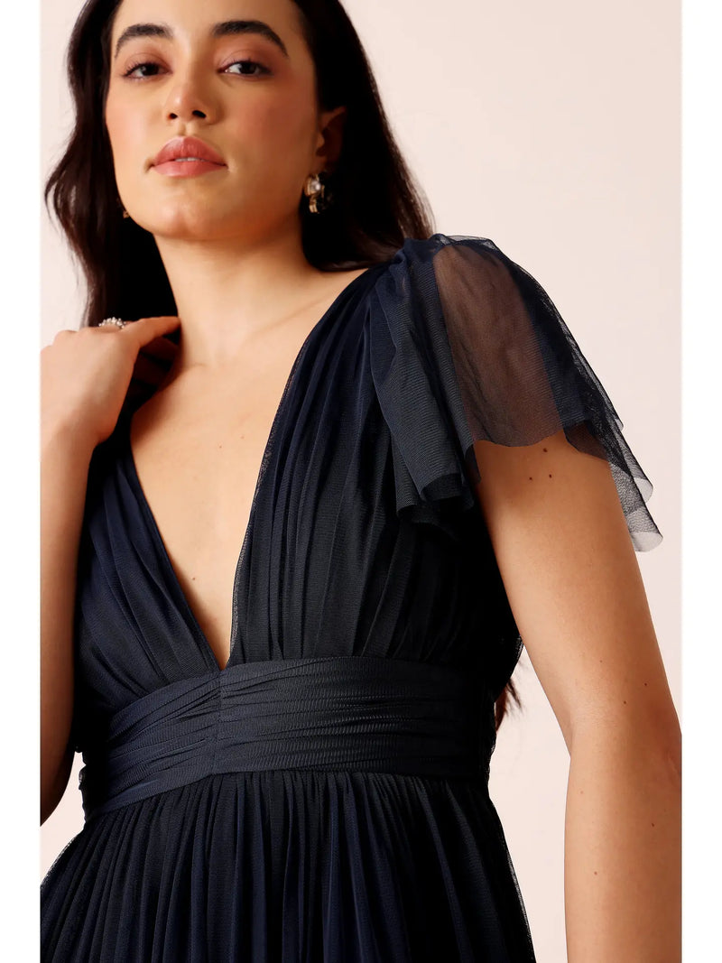 Lace & Beads Madison Navy Blue Tulle Midi Dress