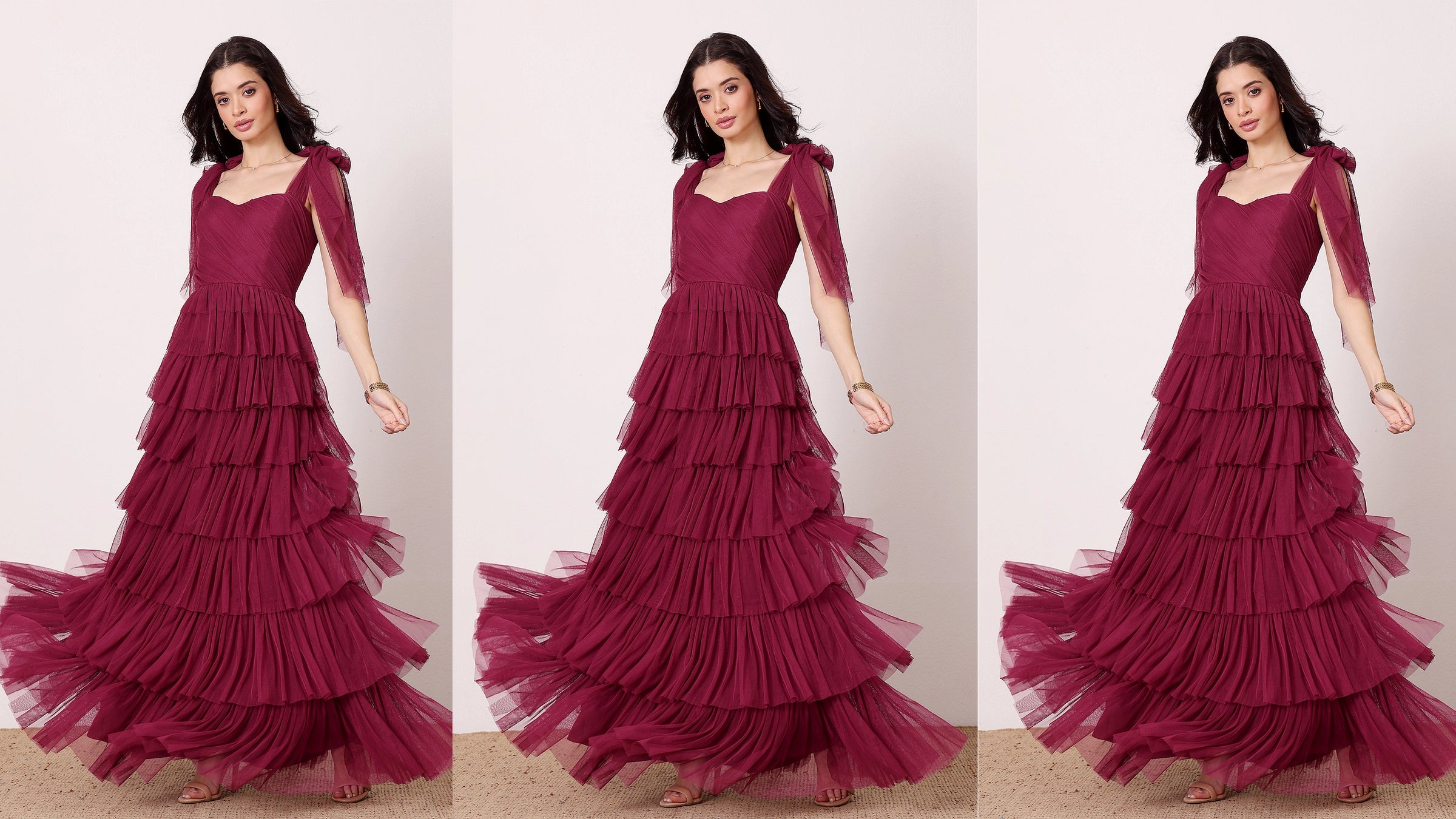 Lace & Beads Madison Chocolate Plum Maxi Tulle Dress