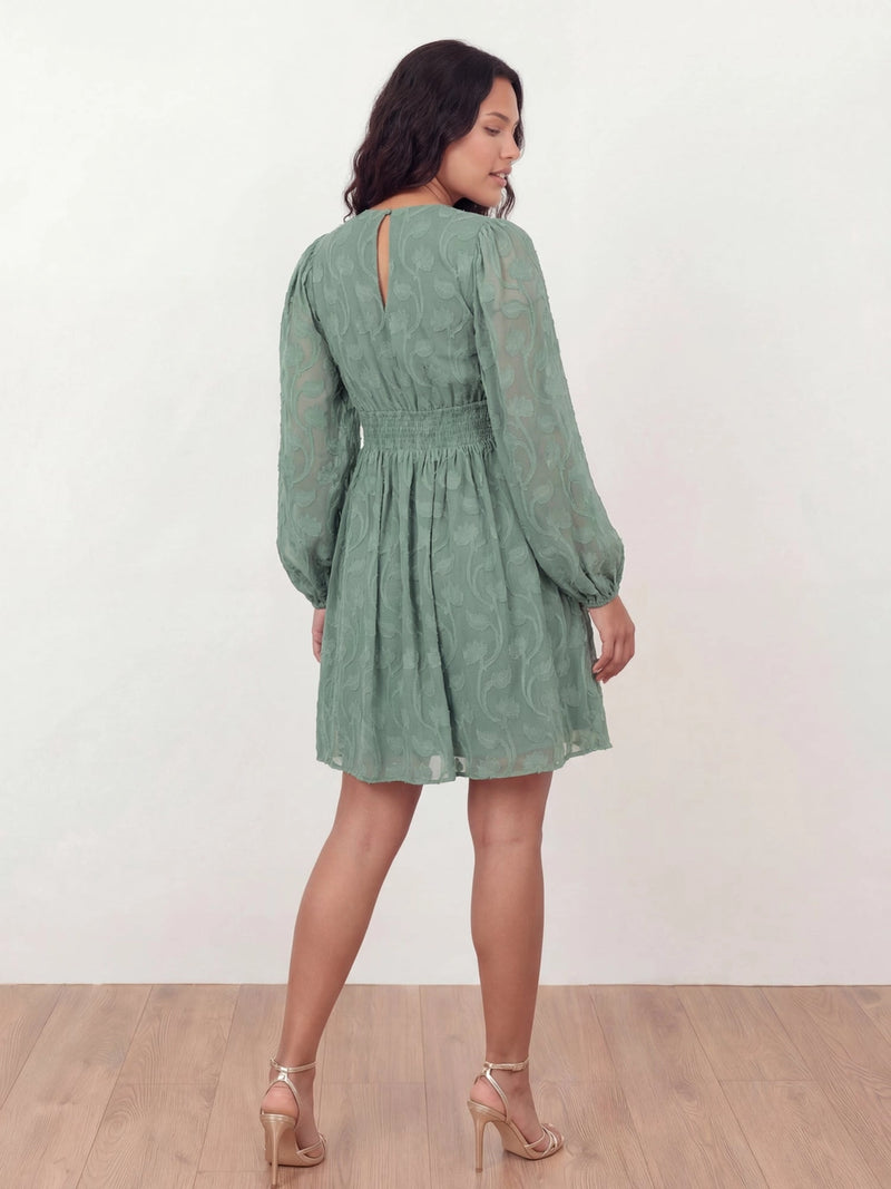 Lovedrobe Sea Green Long Sleeved Burnout Mini Dress