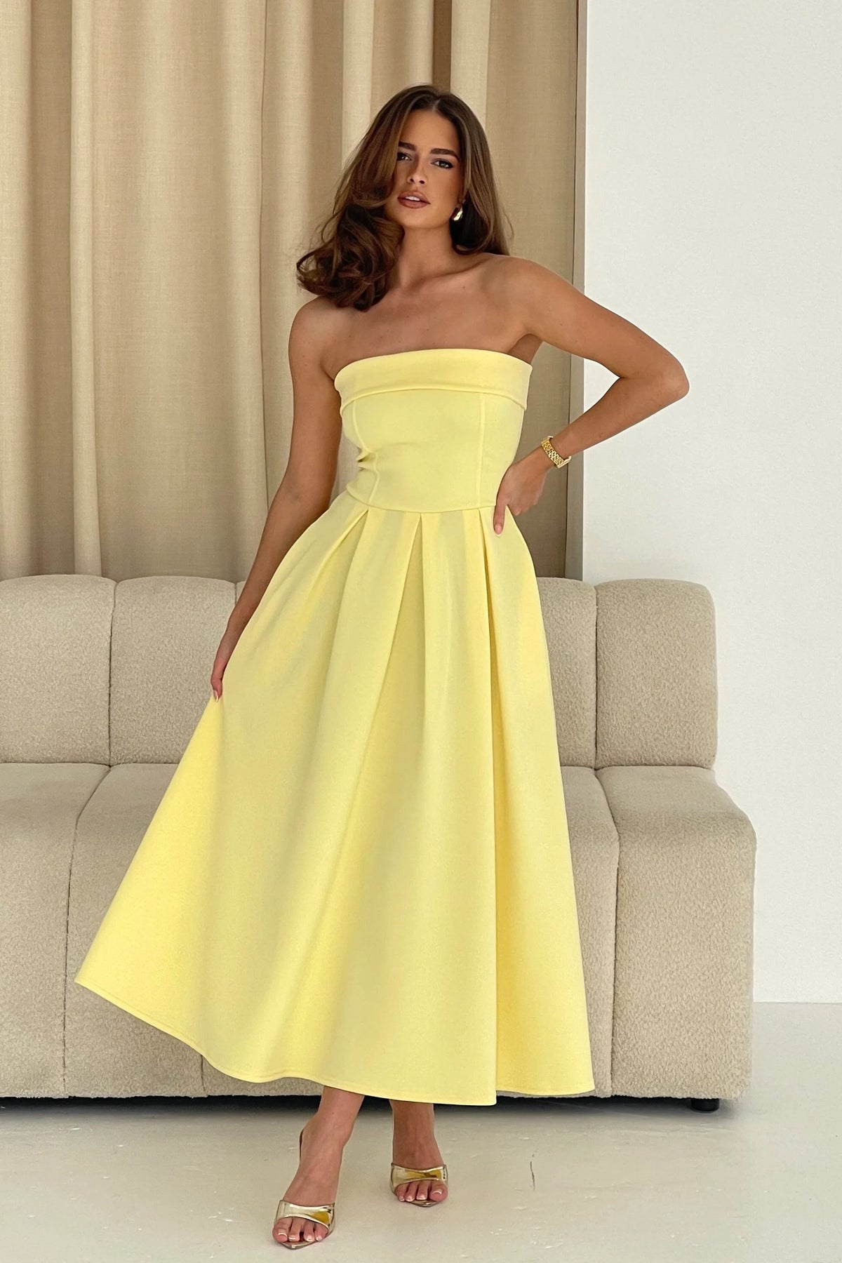Girl In Mind Danni Strapless Bandeau Yellow Dress