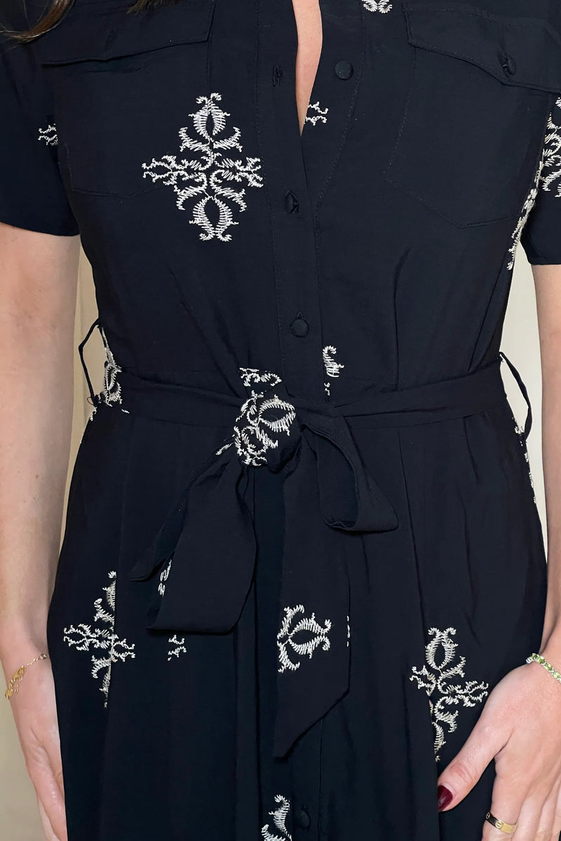 Girl In Mind Solene Embroidered Short Sleeve Midi Shirt Dress