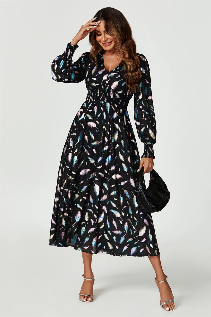 FS Collection Black Floral Ditsy Button Through Midi Dress