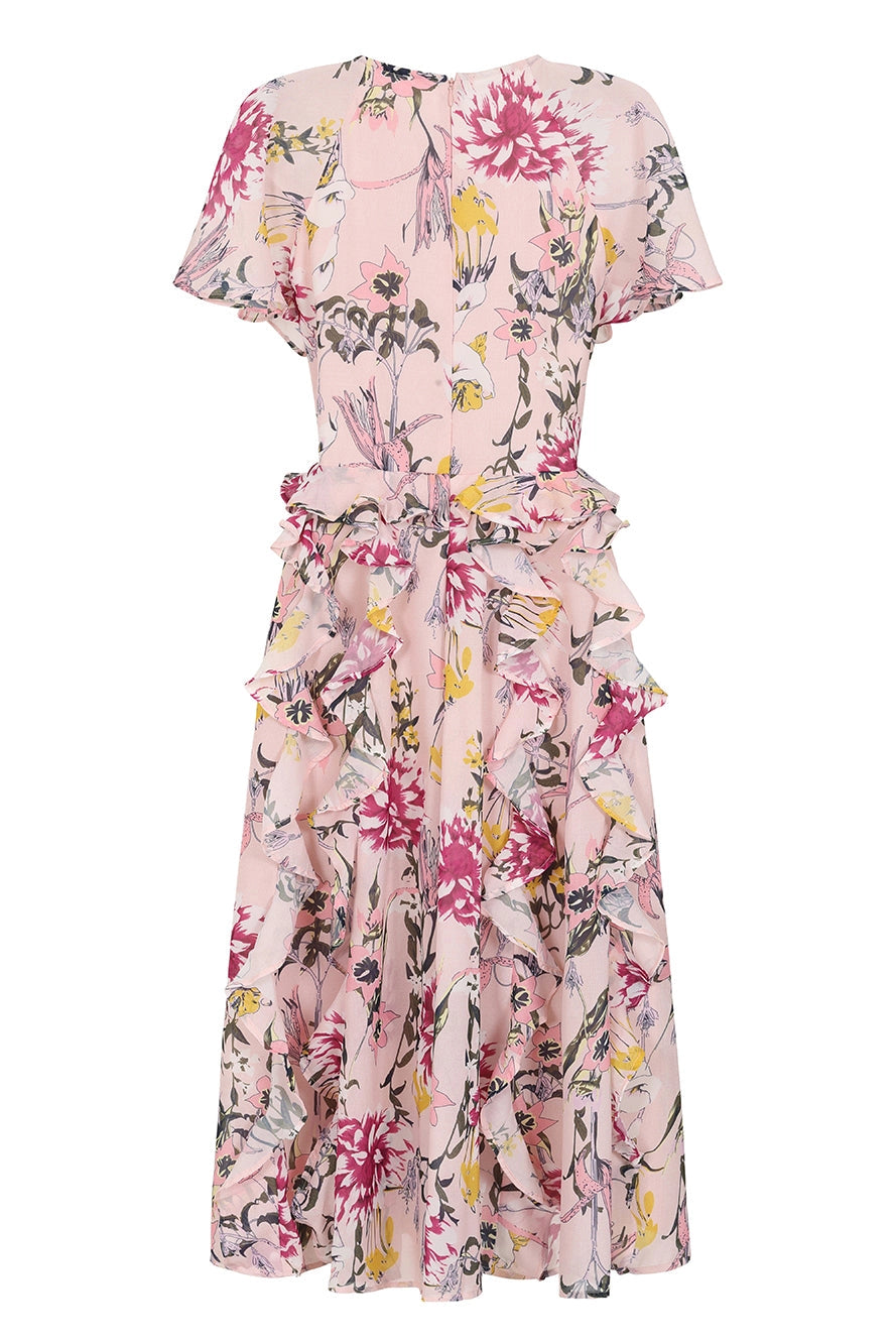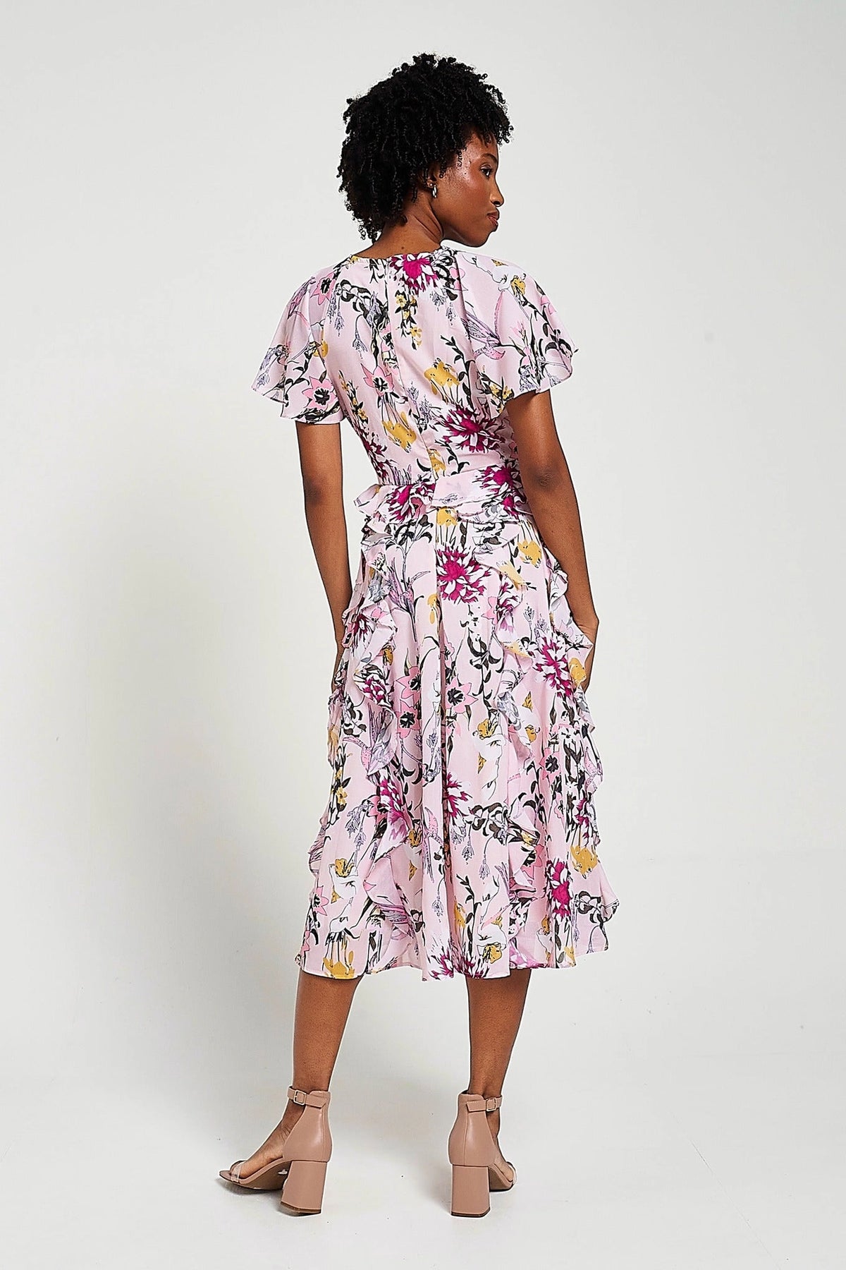 Frock & Frill Corinna Pink Floral Frill Midi Dress