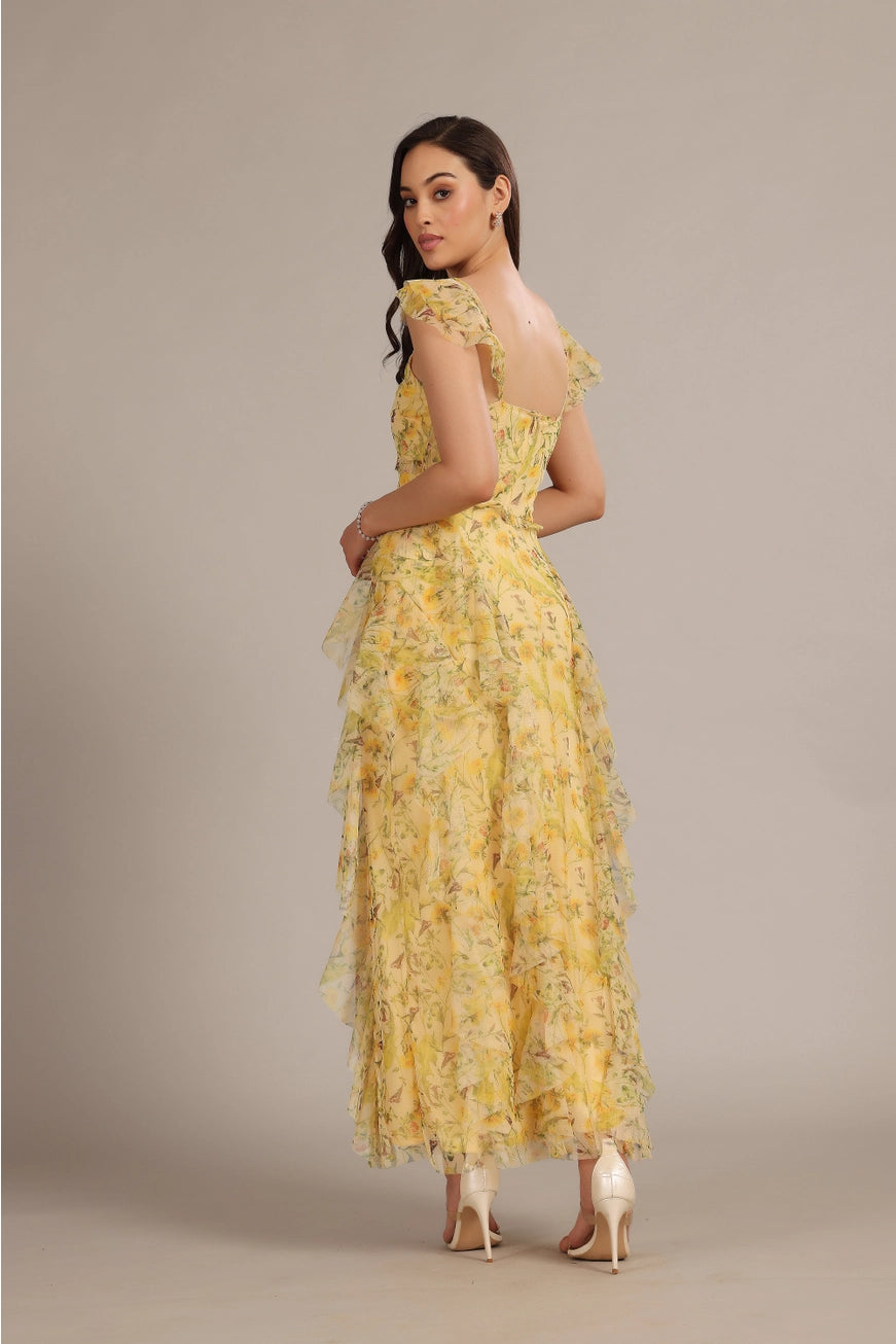 The Lace & Beads Malin Maxi Dress in Yellow Floral.