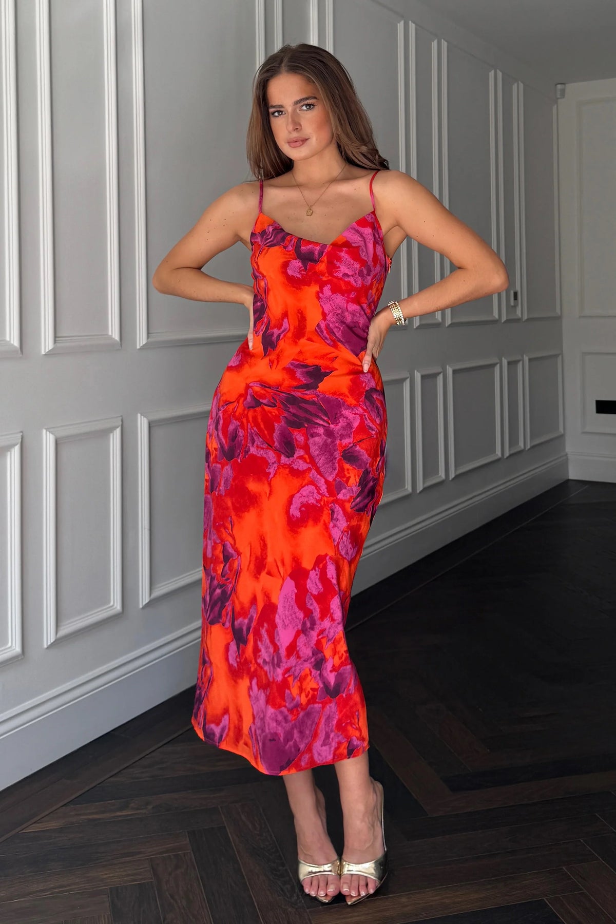 Girl In Mind Naomi Brown Floral Midi Slip Dress