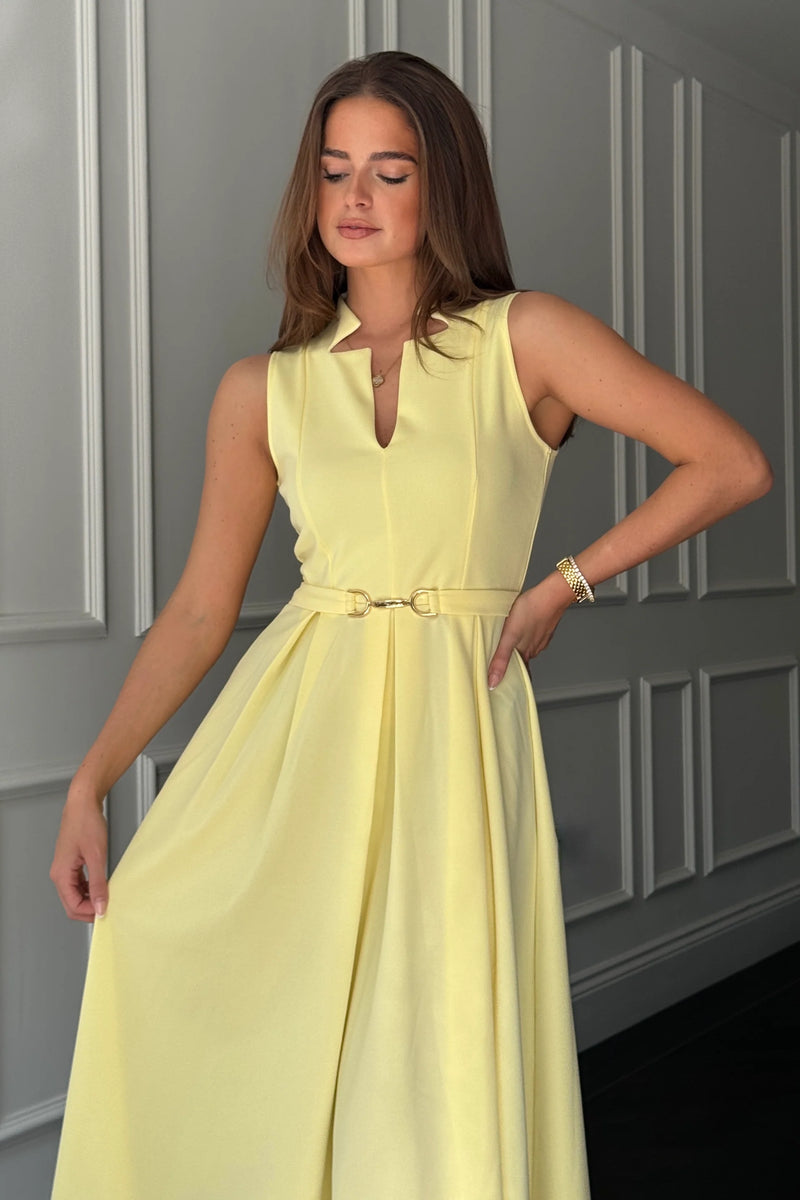 Girl In Mind Ameya Notch neck Sleeveless Yellow Midi Dress