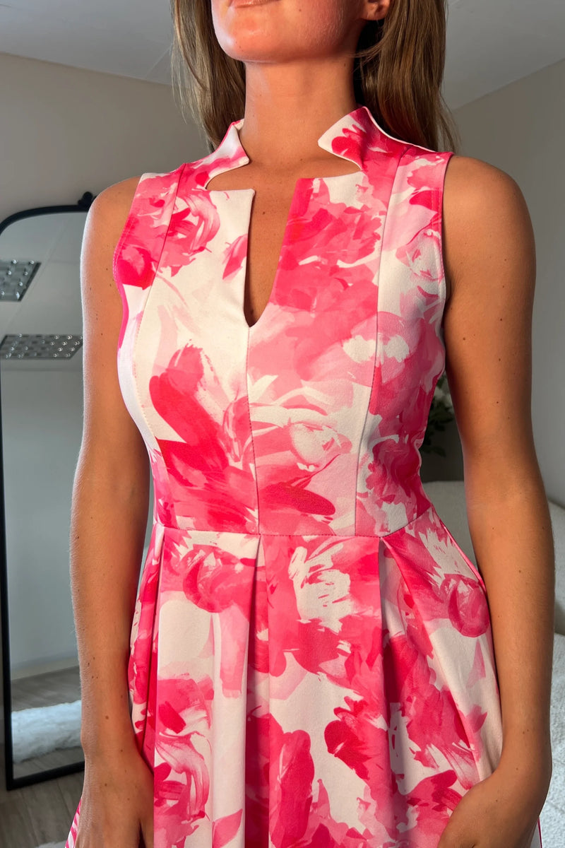 Girl In Mind Ameya Notch Sleeveless Pink Floral Midi Dress