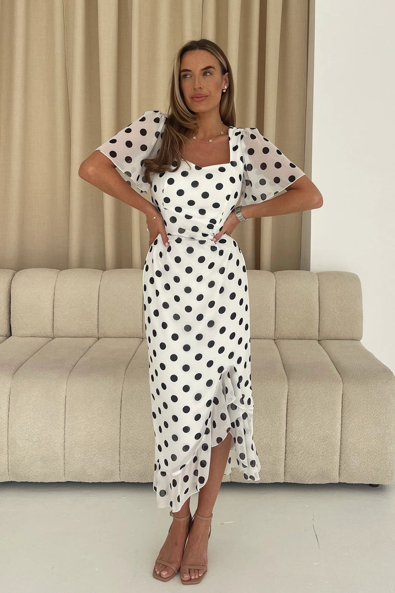 Girl In Mind Heidi Black Dot Ruched Midi Dress