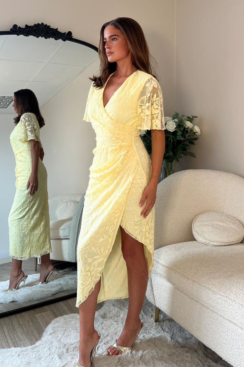 Girl In Mind Natasha Yellow Lace Midi Dress