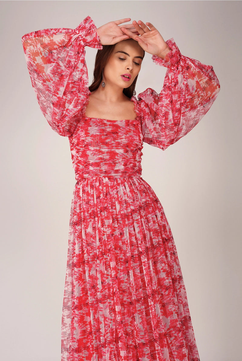 Lace & Beads Lana Red Floral Tulle Maxi Dress