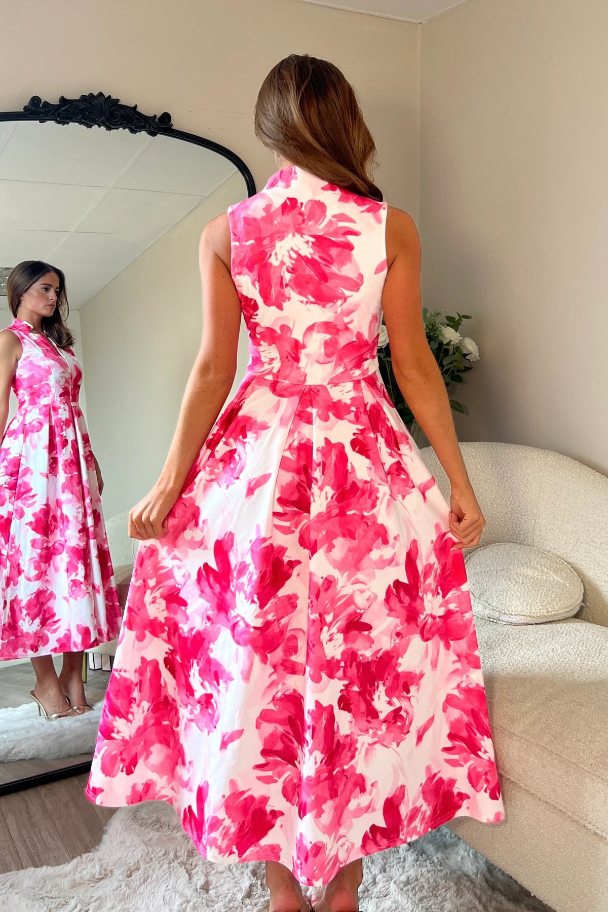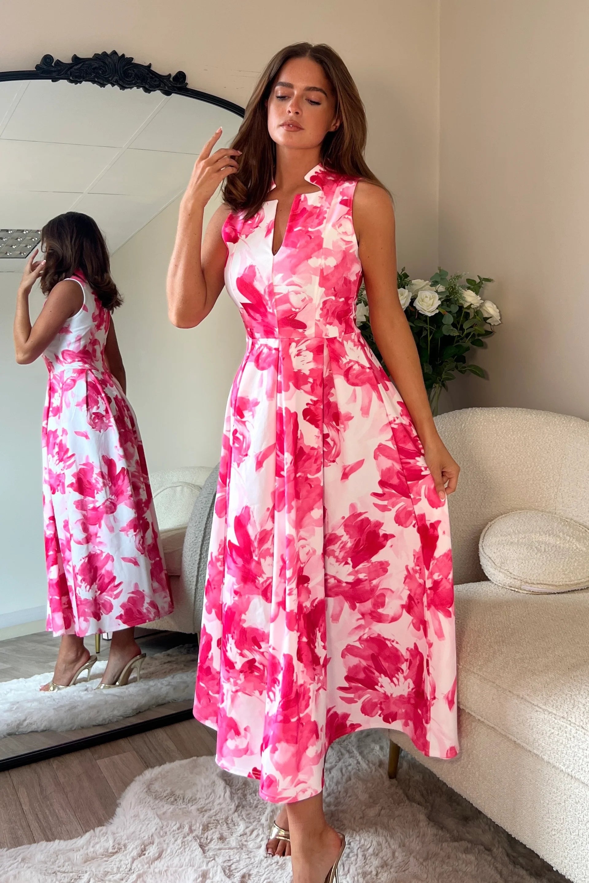 Girl In Mind Ameya Notch Sleeveless Pink Floral Midi Dress